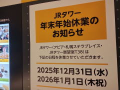 ↑12/31と、1/1の2日間の休業を告知しているJRタワー(=12/17)