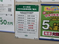 コクミン札幌アピア店(センターB1F)12/31=8−20、1/1=10-19