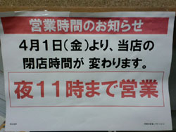 ■閉店時間変更■2011年03月21日 22:50/24日22:50追記